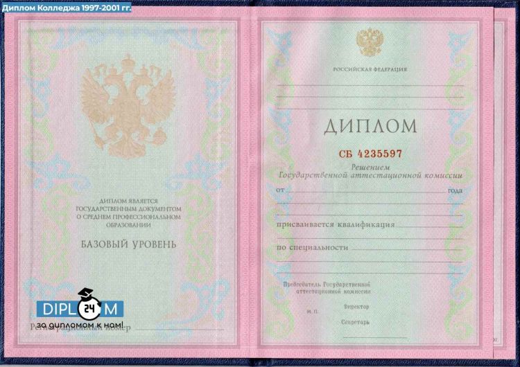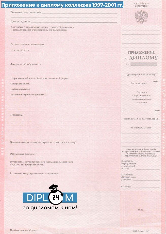 Диплом колледжа 1997-2001 гг.