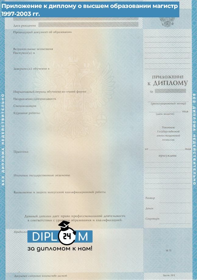 Диплом магистра 1997-2003 гг.