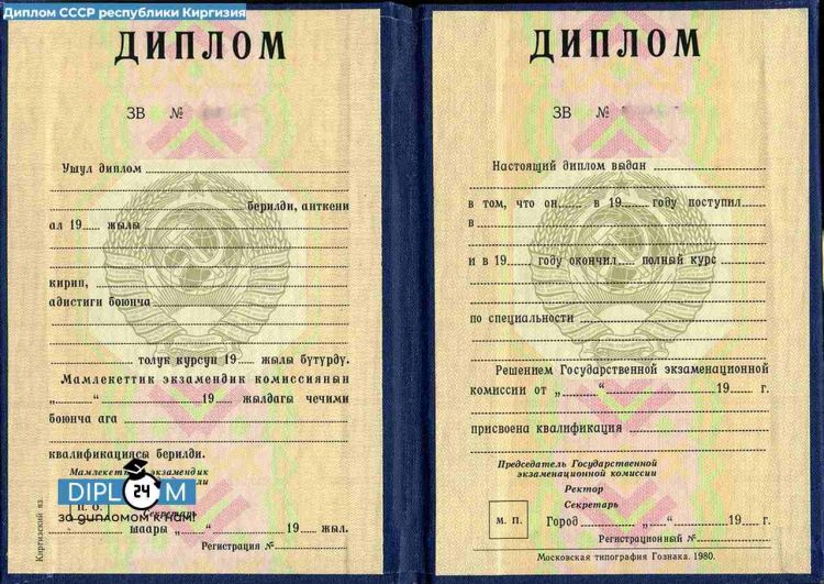 - Диплом СССР о высшем образовании Республики Киргизия