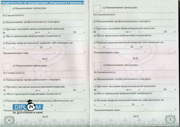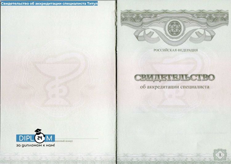 - Комплектация: Корочка, титульный бланк и приложение к свидетельство об аккредитации специалиста