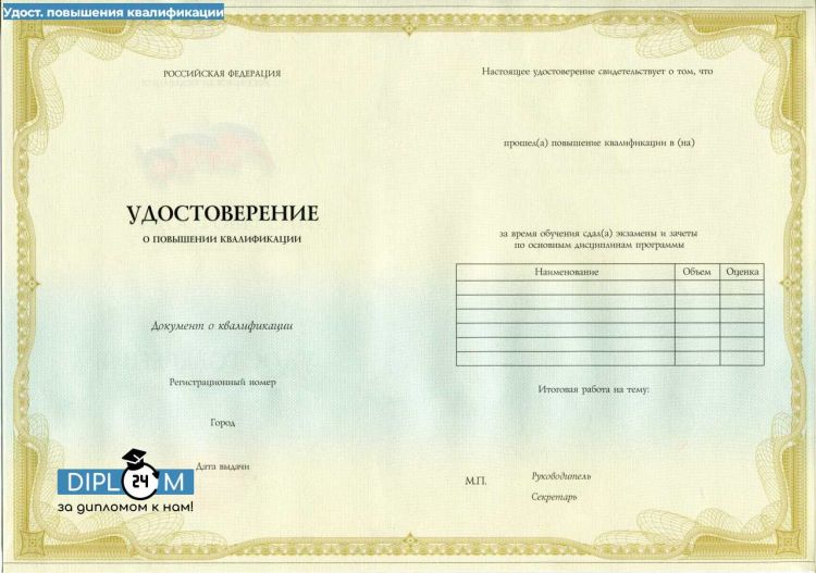 - Комплектация: Корочка, титульный бланк Удостоверение повышение квалификации